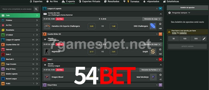 O 54bet oferece uma grande seleção de opções de apostas em e-sports com probabilidades competitivas